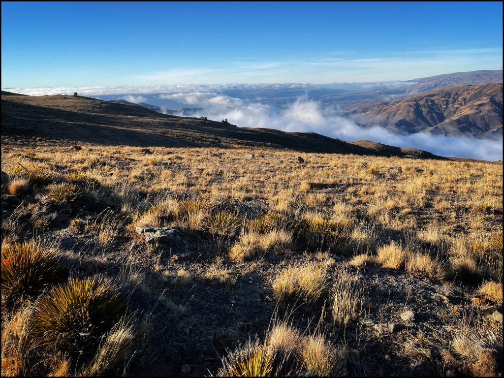 Rapidement nous abordons une belle section en montée qui nous fera gagner quelques 700 m de dénivellation positive. Notre chemin serpente tranquillement dans les hautes herbes et à mesure que l’on s’élève entre les blocs rocheux, les bruits d’un petit groupe de supporters, alimentés par le fracas de cloches au son plus volubile, glissent sur la pente et arrivent à nos oreilles. Nos dossards sont scrutés comme une marque d’appartenance qui exhibe notre port d’attache. Le drapeau français qu’arbore mon bassin arrache du brouhaha quelques « bravos » timides même si dans ces contrées reculées la langue de Molière ne semble pas des plus pratiquée. J’esquisse un sourire avant de recouvrer ma solitude.