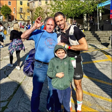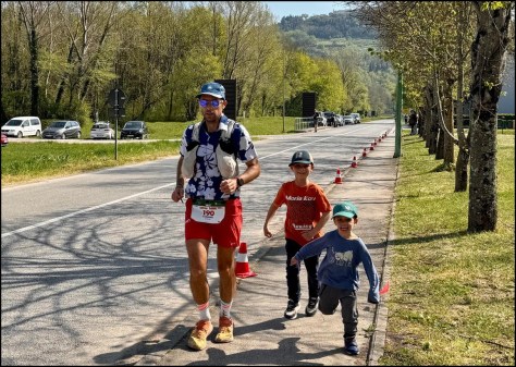 S’en suit la descente vers Livade, la traversée de la route principale puis une longue ligne droite encadrée par des plots qui marque le 130ème kilomètre et le dernier ravitaillement en présence de la famille. Les enfants m’accueillent en fanfare et quelques délices sucrés s’impatientent d’être mangés. Louise apporte de la nouveauté à une alimentation qui jusqu’ici était stéréotypée. Elle a toujours cette attention sans pareille, qui fait que sans elle rien n’a de saveur. Du coin de l’œil j’observe ma mère qui veille sur cette petite tribu en fusion et ce père tête en l’air, à sans elle…à voir Je m’arrête quelques instants pour soulager un corps qui s’est déjà bien dévoué, mais rien de grave, à cette distance je me sens plutôt bien. Il reste à présent un peu moins de 40 kms et les grosses difficultés semblent ancrées dans le passé.