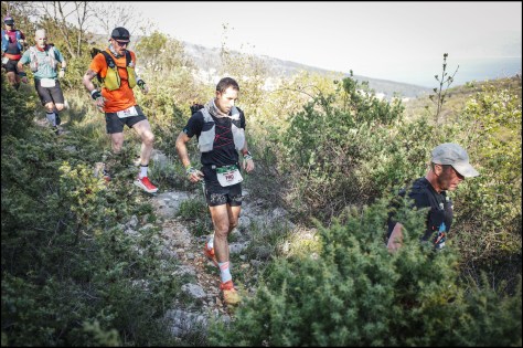 Les premières foulées nous précipitent rapidement du haut de la cité médiévale dans une descente en sous-bois sur un « single » un peu joueur qui étire pas à pas cette chaine humaine qui s’anime par à-coups. On se double à gauche, à droite, attendant son heure au-dessus des racines comme pour pendre une bonne vague et son rythme de croisière, aussi efficace qu’économe, aller vite pour ralentir, un vrai paradoxe…