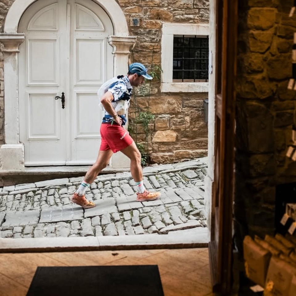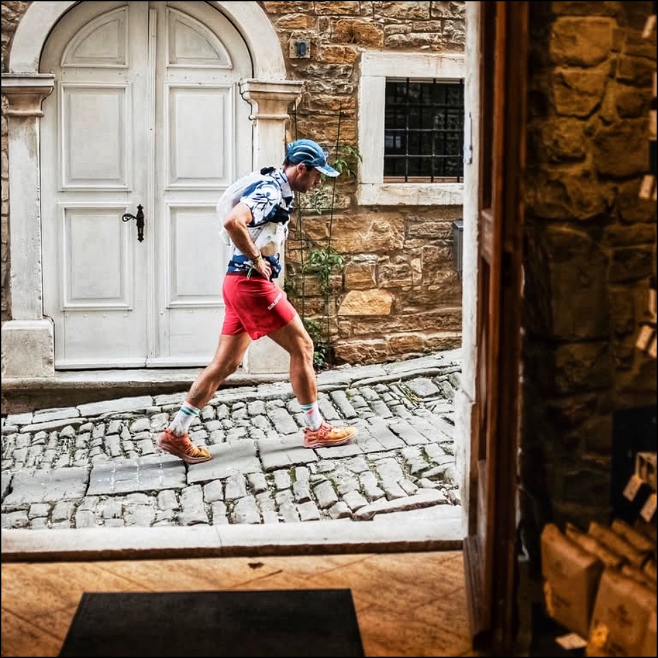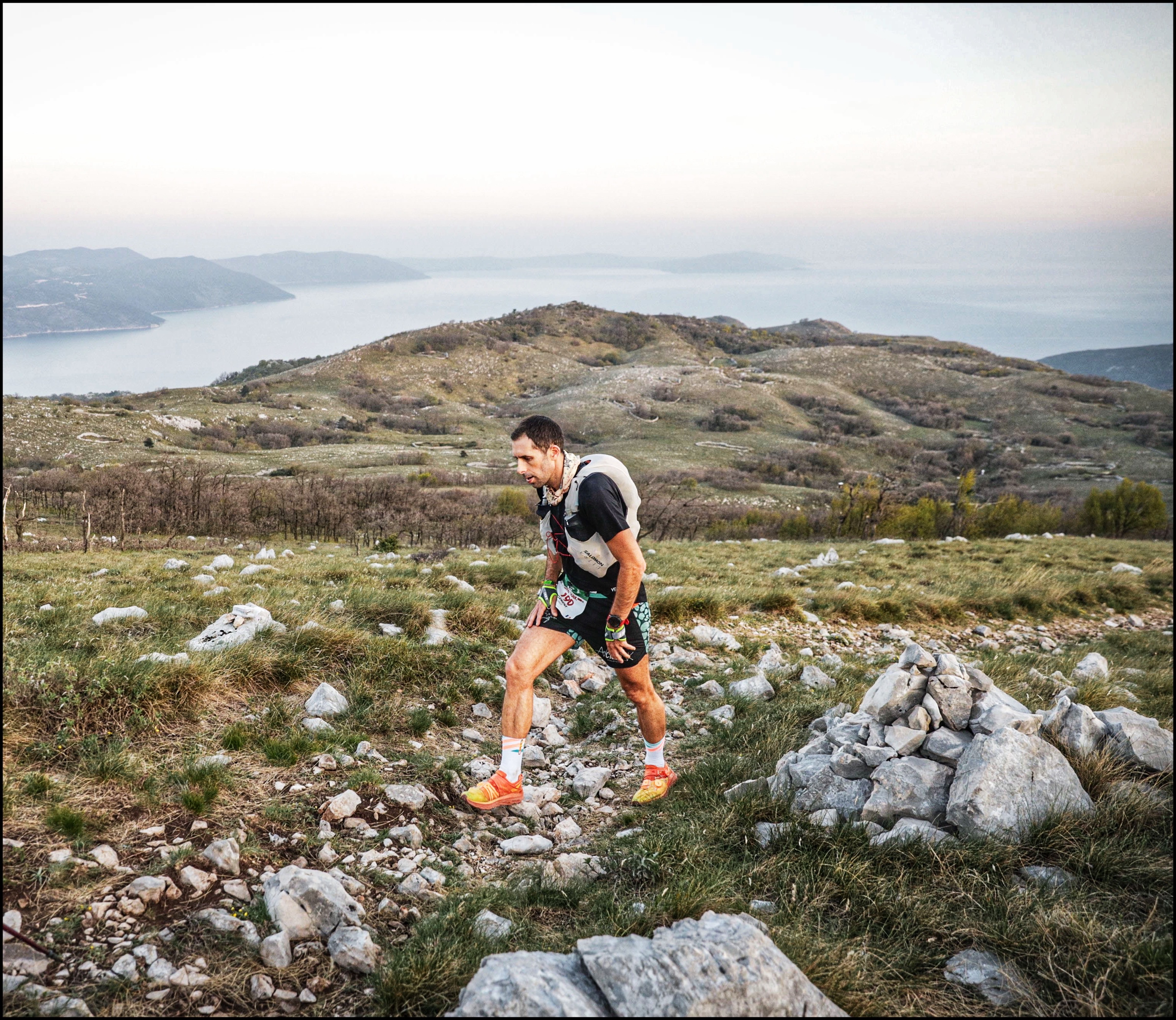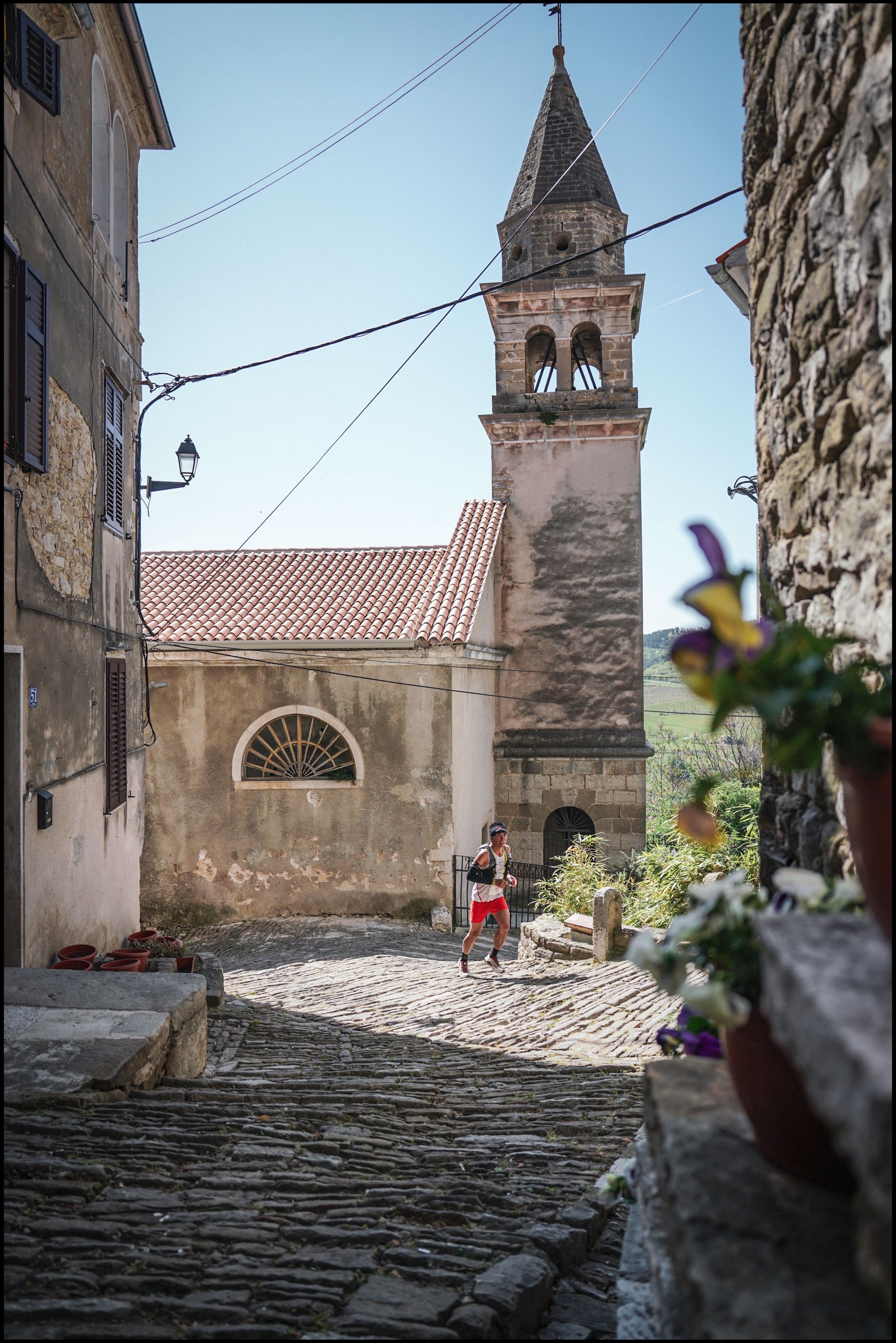 À cette époque de l’année, le soleil trace ses premiers sillons sur la péninsule de l’Istrie, baignant d’une lumière douce ce paysage baltique. Du haut du village de Labin l’arche de départ semble regarder vers l’horizon. La foule qui m’entoure est polyglotte bien qu’un dialecte slave à l’accent méridional semble prendre l’ascendant. De ce côté de l’Europe, la communauté de coureurs de fond a la mine joyeuse, authentique, il s’y dégage une timidité non feinte qui ne s’épanche pas dans le maniement des mots, le comportement taiseux de celui qui observe avant de se lier à l’autre.