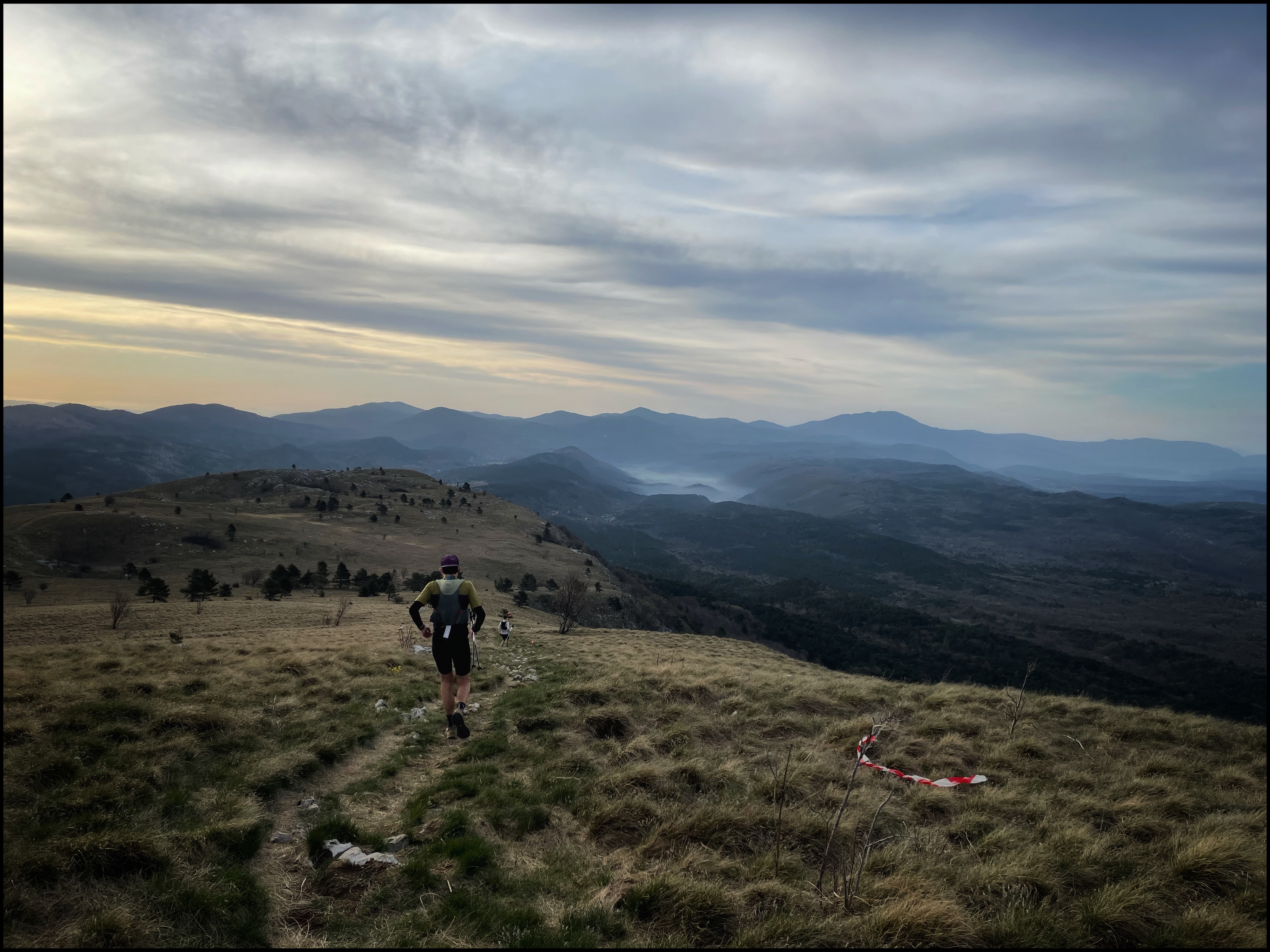 Au départ de Livade, le mouvement se ranime de soubresaut et les corps oscillent de nouveau sur des sentiers plus cléments. La vitesse ascensionnelle est à présent dans le positif et la marche s’efface pour un trot plus bucolique. Une dernière grosse bosse avant de nous élancer sur les flancs du dernier relief, beaucoup plus progressif qui permettra de finir par une longue descente comme un toboggan jusqu’à l’arrivée.